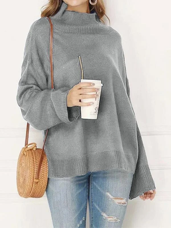 Mid-high neck sweater round neck pullover knit women