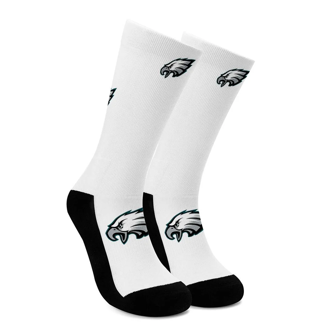 Get in the game this season with these Deuce performance crew socks! Great for hitting the gym, field or court, these socks will keep you comfortable while showing your love for the Philadelphia Eagles?wherever you wear them! Sharp, woven Philadelphia Eagles?graphics and colors highlight these moisture-wicking synthetic blended shin-length socks.?