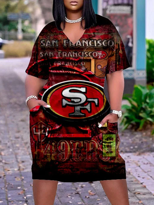 San Francisco 49ers Limited Edition V-Neck Casual Pocket Dress